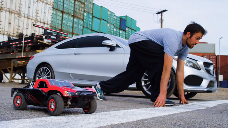Кто кого: Mercedes C-Class против паркурщика и радиоуправляемой машинки